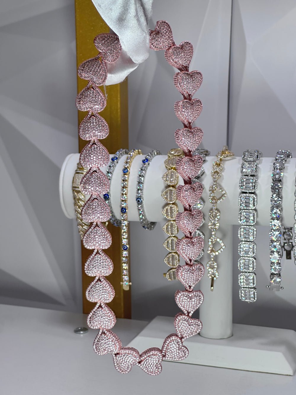 Cursive 2.0 Baguette Hearts Custom Pendant & Necklace